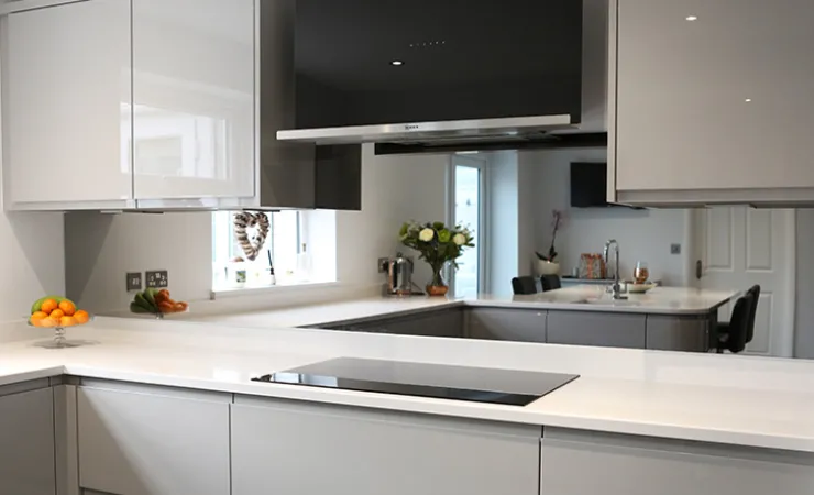 Our Fitted Kitchen department has a broad range of glass splashback in hundreds of colour options, including metallic and sparkle effects. We can also mix colours to order from all the top brands, including RAL, Dulux and Farrow & Ball.