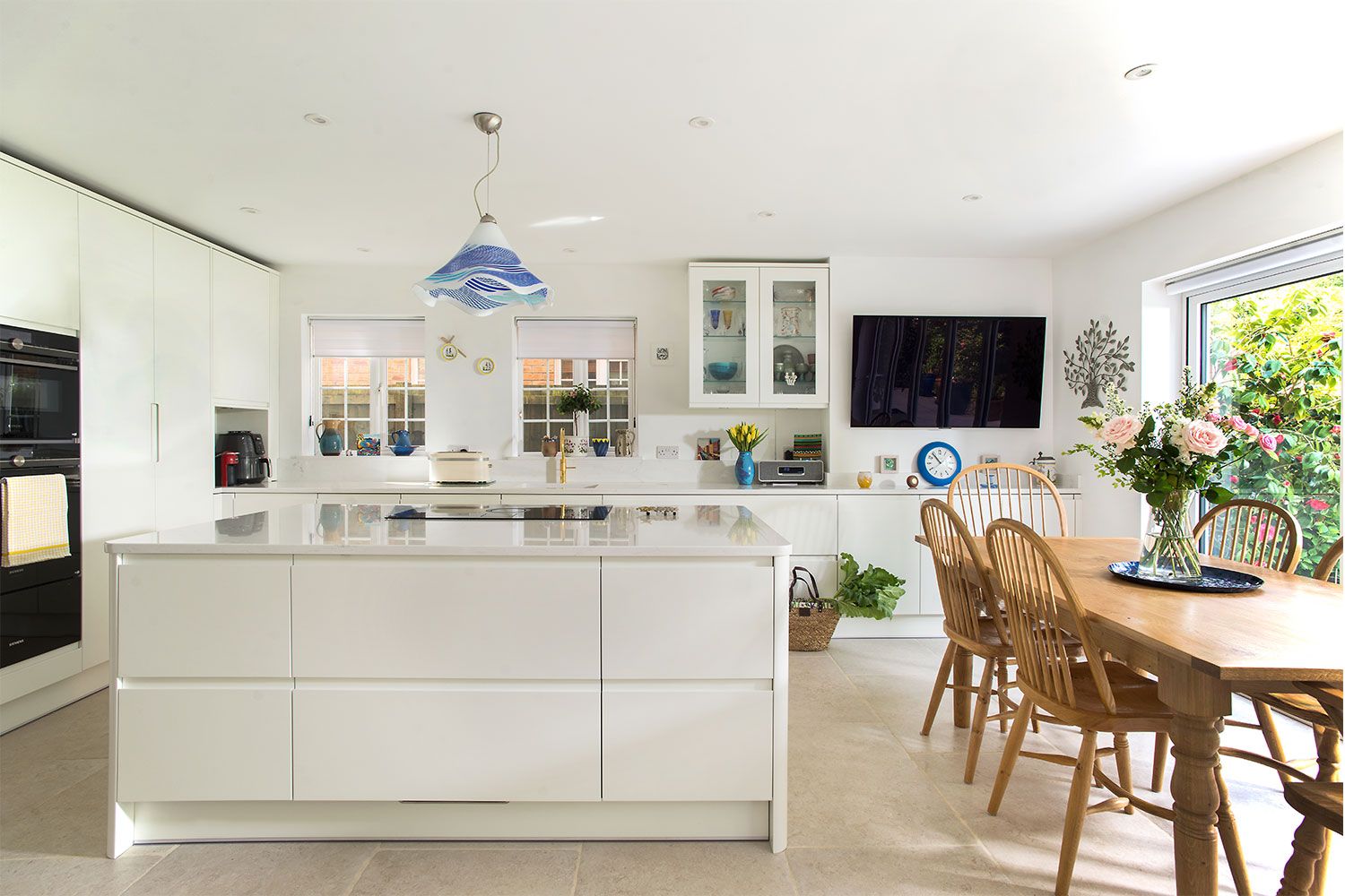 “It’s a bright, light, sociable space now,” says Rachel, “When we used the dining room for big gatherings, whoever was cooking, would be isolated in the kitchen. Now there’s room for everyone to sit comfortably, chat and move around easily. We’ve got the best kitchen we could possibly have.”