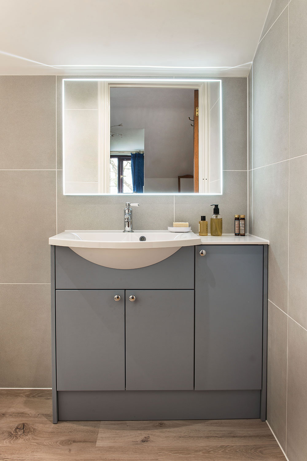 Another of Daisy’s suggestions was the large wall-mirror above each basin. As well as boosting light and making the rooms feel more spacious, the slick, touch-activated lighting is very appealing,