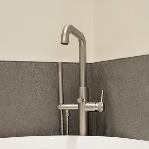 Before her visit, Ruth had already decided she wanted a free-standing bath for a luxury feel to the space with a separate shower to keep it practical for her visiting guests. Daisy opted for a Roper Rhodes Note free-standing bath in the design, complimented by brushed nickel brassware to enhance the premium look of the bath. The use of brushed nickel was also extended to the basin mixer tap and towel rail, creating a cohesive design.