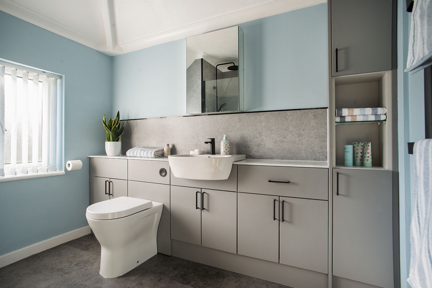 Storage is often one of the first things to consider. A cluttered bathroom can quickly lose any sense of calm, especially when shelves and surfaces are crowded with lotions, potions, cosmetics and everyday essentials. Fitted bathroom furniture, vanity units and clever built-in solutions help keep everything neatly tucked away while making the room feel more spacious and polished.