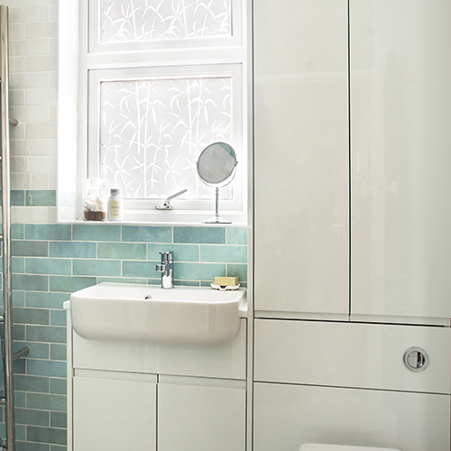 To reduce costs and disruption, the layout makes use of the existing plumbing. The basin and WC are more or less in their original places, with the much-needed storage built around them. Cheryl spotted the space-enhancing units in our showroom and loved the smooth, easy-to-clean surface and handle-less design,