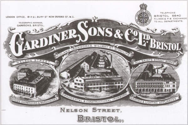 By 1878, the business had expanded into manufacturing, producing gates, railings, steel windows, church ironwork and light constructional steelwork from premises in All Saints Street and Duck Lane (now Fairfax Street). In 1893, Gardiner & Sons became one of the first limited liability companies in Bristol.